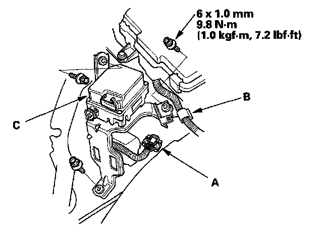 5. Remove the three mounting bolts, and remove the cruise control actuator (C).