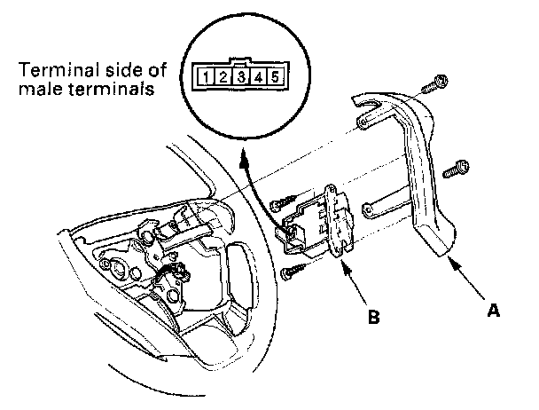 2. Remove the cover (A), then remove the set/resume/ cancel switch (B).