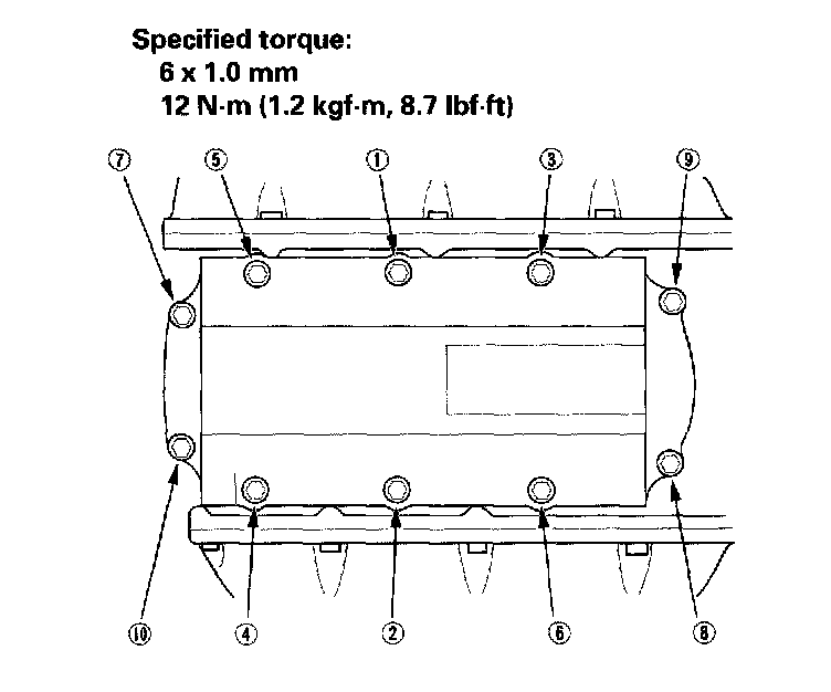 3. Install the upper cover. Tighten the bolts and nuts sequentially in two or three steps. Always use a new gasket.