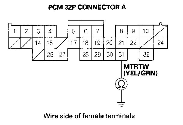 5. Check for continuity between PCM 32P connector A No. 31 terminal and body ground.