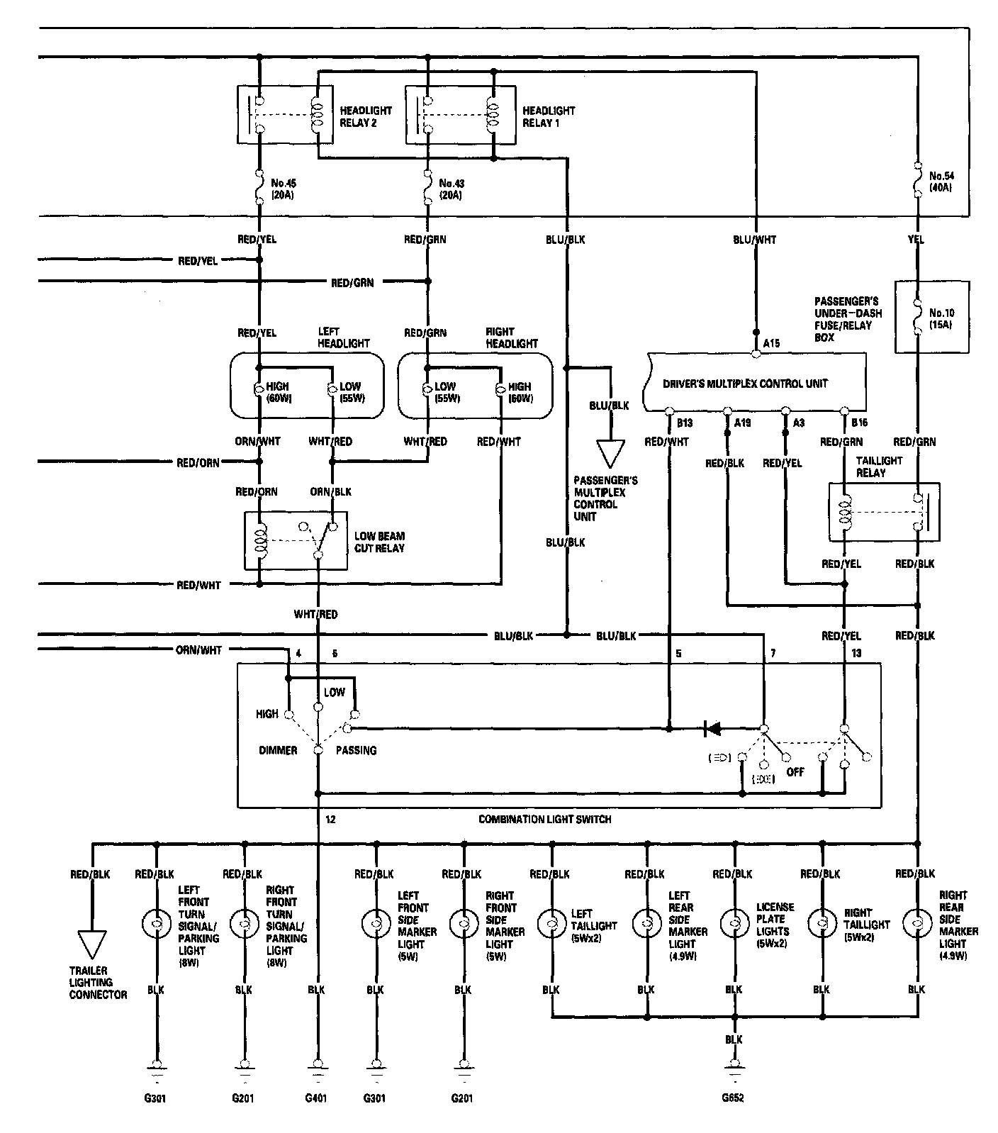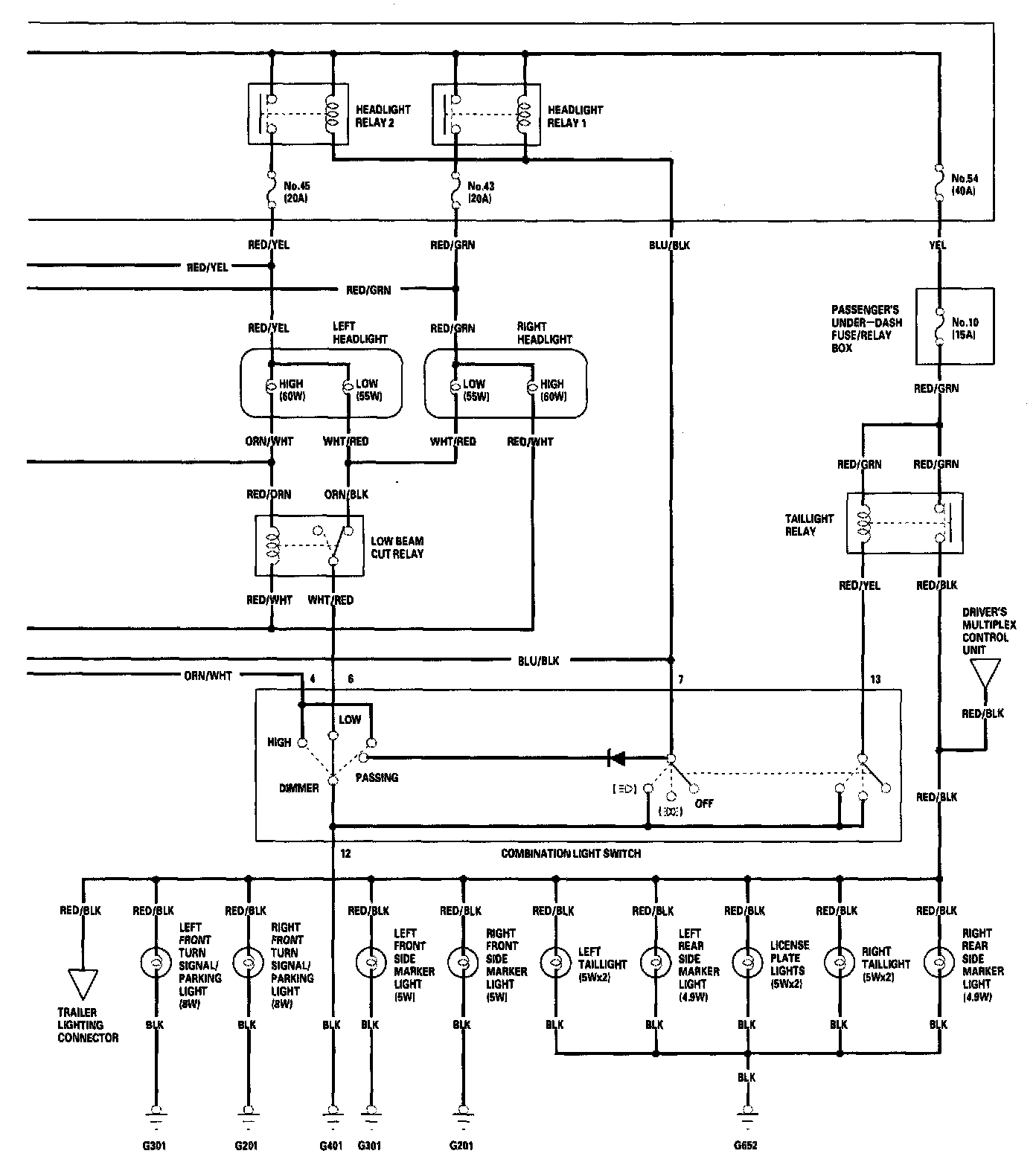 Exterior Lights - Circuit Diagram (With Automatic Lights-off Feature (USA)):