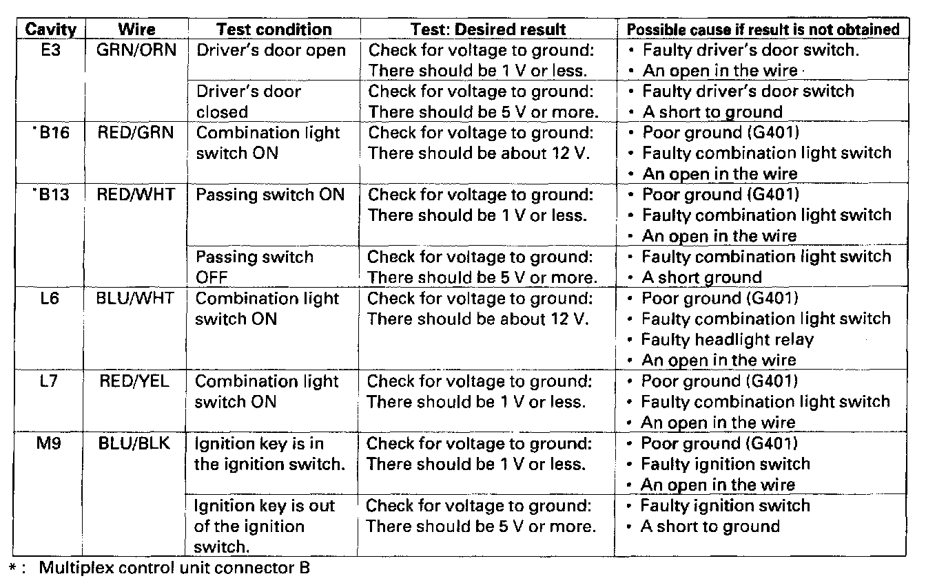 Auto-off Headlights Control Unit Input Test1. Before testing the auto-off headlights functions, troubleshoot the multiplex control system.