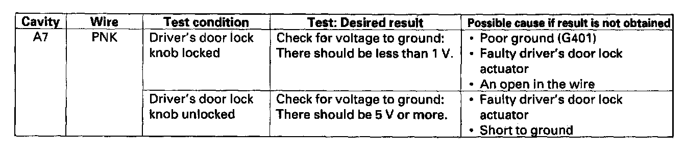 - If the input test proves OK, the driver's or door multiplex control unit must be faulty; replace with a known-good unit and retest.
