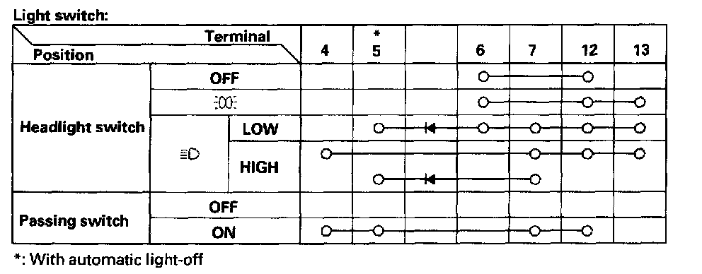 - If the terminals look OK, check for continuity between the terminals in each switch position according to the tables