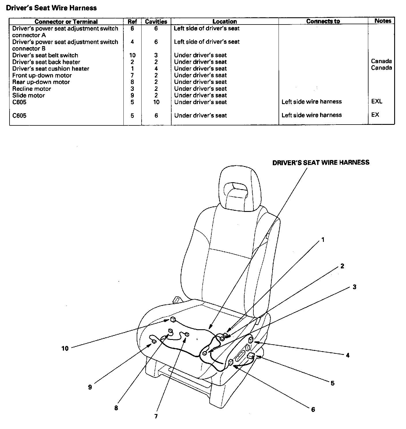 Driver's Seat Wire Harness (EX, EX-L):
