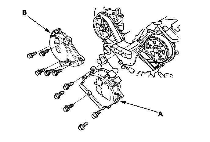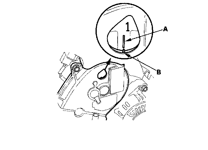 Removal1. Turn the crankshaft so its white mark (A) lines up with the pointer (B).