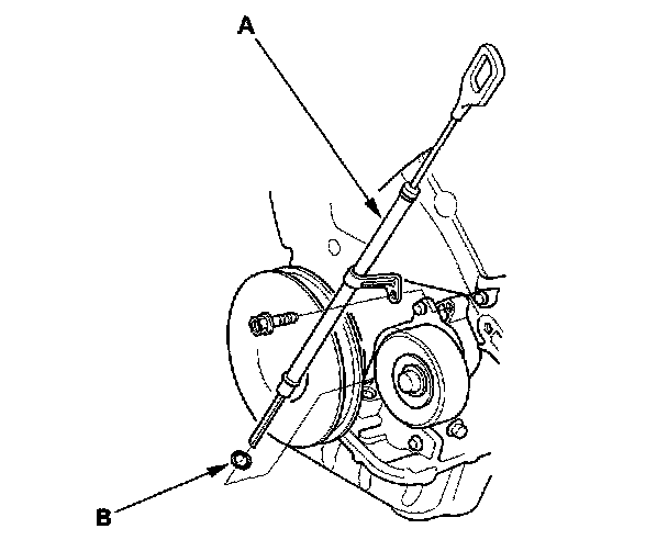 16. Install the dipstick and tube (A) with a new O-ring (B).