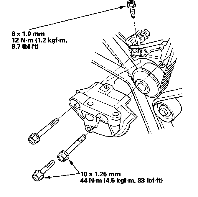 23. Install the side engine mount bracket, then tighten the mounting bolts in the numbered sequence shown.