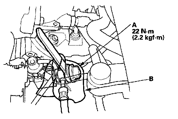 13. Remove the pressure gauge, and reinstall the fuel pulsation damper with a new washer. Tighten the fuel pulsation damper to 22 N.m (2.2 kgf.m, 16 lbf.ft).