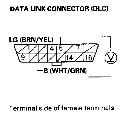 4. Measure voltage between DLC terminals No.5 and No.16.