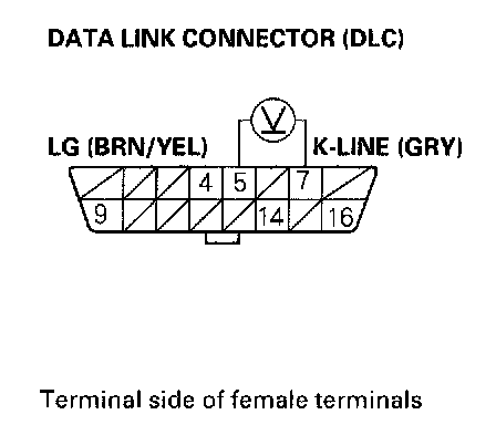13. Measure voltage between DLC terminals No.5 and No.7.