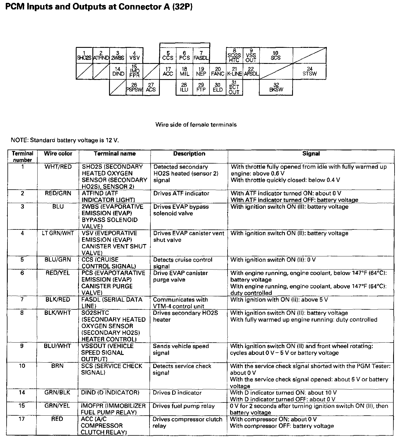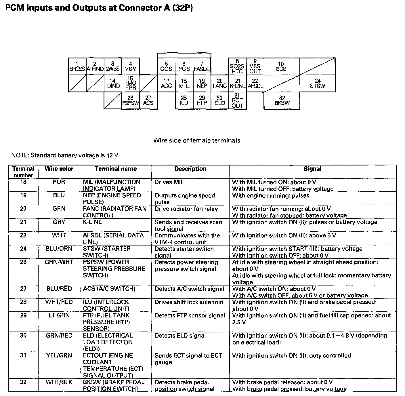 PCM Inputs And Outputs At Connector A (32P) Part 1:
