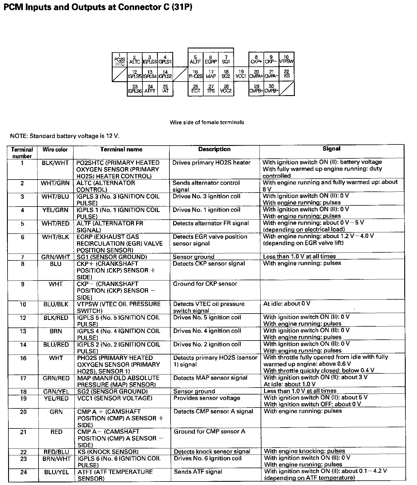 PCM Inputs And Outputs At Connector C (31P) Part 1: