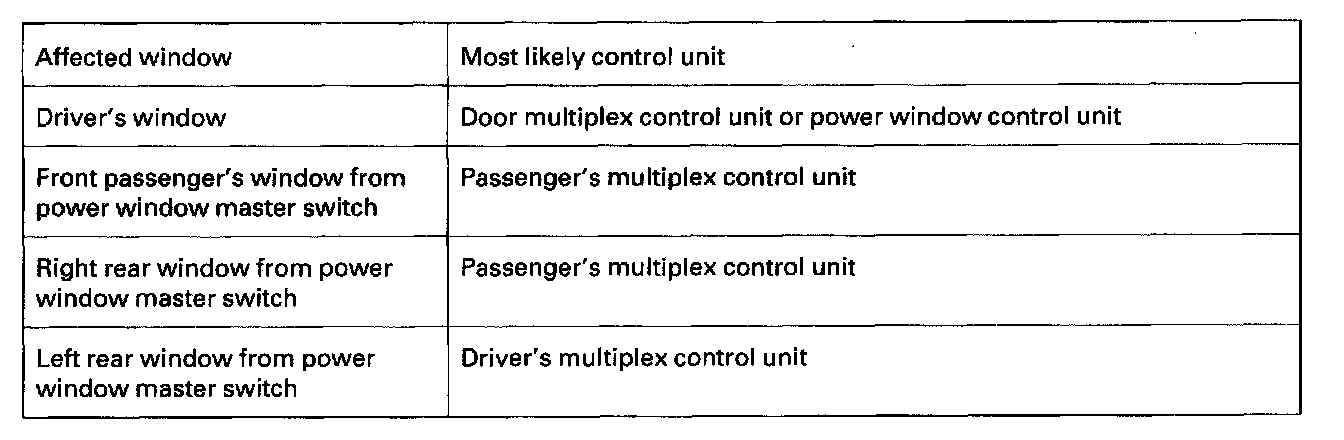 1. Before testing the power window control functions, troubleshoot the multiplex control system.