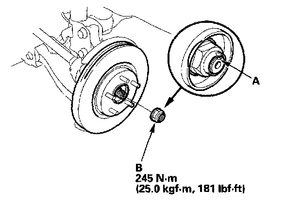 - Before installing the new spindle nut, apply a small amount of engine oil to the seating surface of the nut. After tightening, use a drift to stake the spindle nut shoulder against the driveshaft.