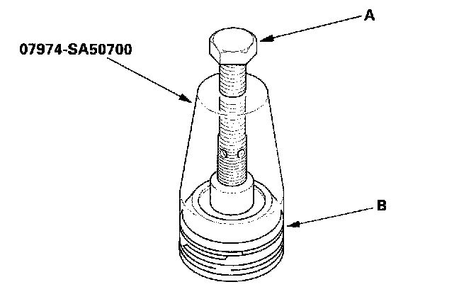 5. Adjust the special tool with the adjusting bolt (A) until its base is just above the groove around the bottom of the boot. Then slide the clip (B) over the tool and into position on the boot.