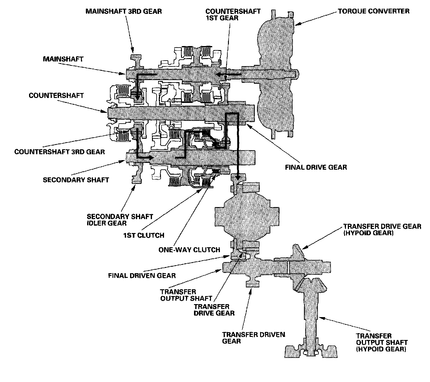 ^ Hydraulic pressure is also applied to the 1st-hold clutch, and the 1st-hold clutch engages the secondary shaft 1st gear with the secondary shaft.