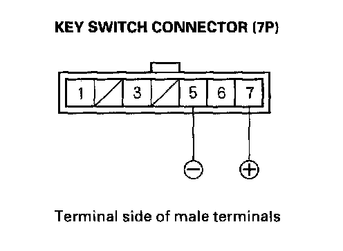 Key Interlock System Circuit Troubleshooting1. Disconnect the key switch connector (7P) from the steering lock assembly.