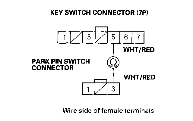 8. Check for continuity between the No. 3 terminal of the park pin switch connector and the No. 5 terminal of the key switch connector.