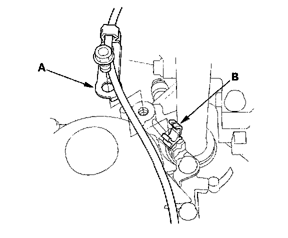 3. Remove the primary heated oxygen sensor (Primary H02S) connector (A) from its connector bracket (B), then disconnect the connector.