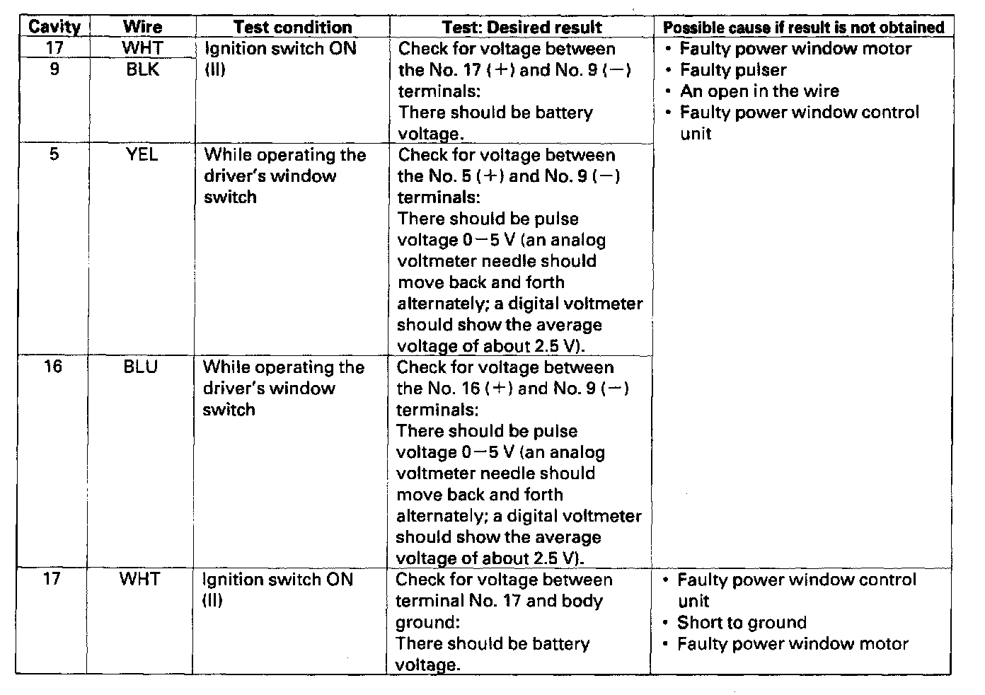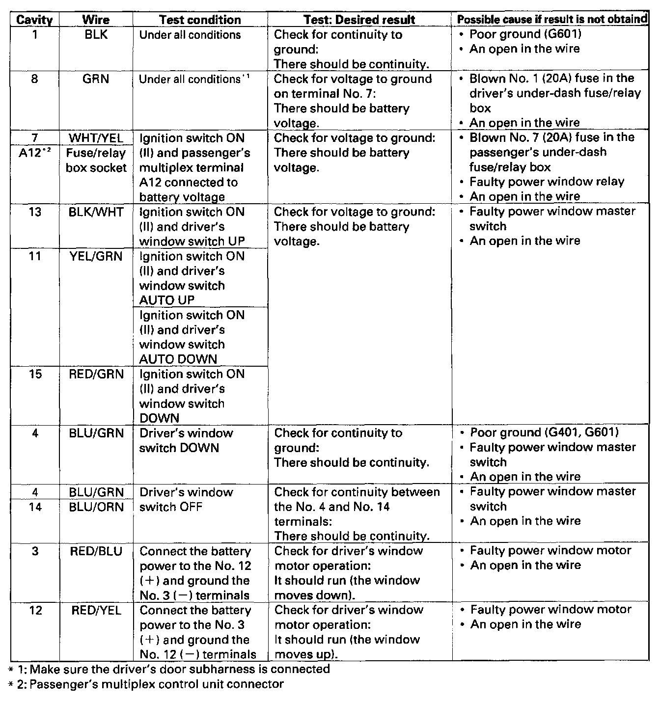 Power Window Control Unit Input Test1. Remove the driver's door panel, but leave the driver's door subharness connector connected to the driver's door wire harness.