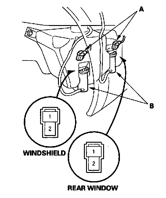 3. Test the washer motor by connecting battery power to the No. 1 terminal and ground to the No. 2 terminal.