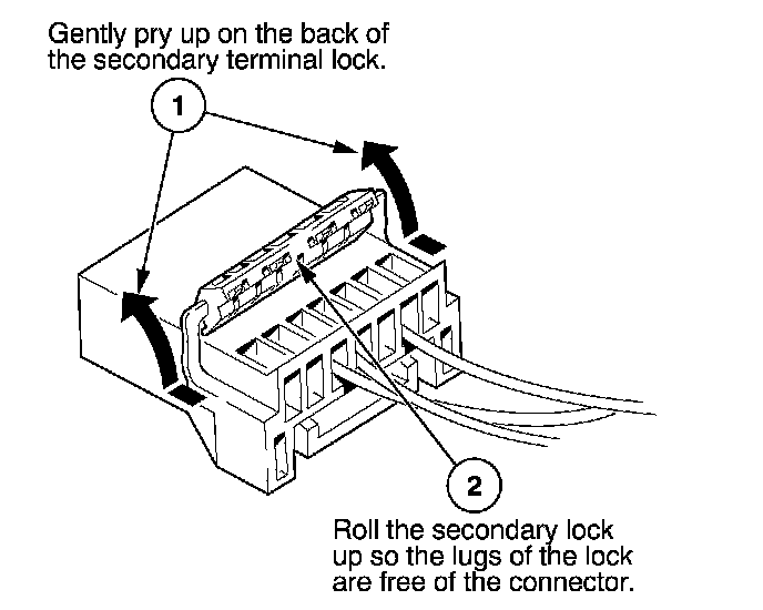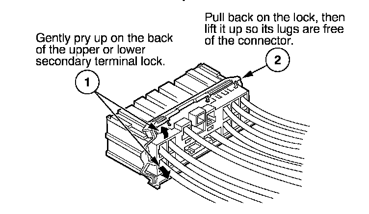 - If it has a secondary terminal lock, go to Connectors With a Secondary Lock. A secondary lock, found on most connectors on some models, is an additional locking device on the connector housing as a backup for the primary lock on the terminal.