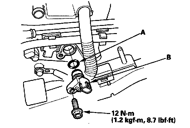 4. Install the sensor in the reverse order of removal with a new O-ring (A).