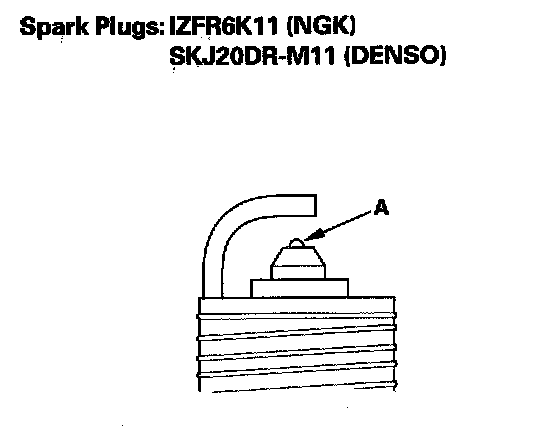 2. Do not adjust the gap of indium tip plugs (A); replace the spark plug if the gap is out of specification.