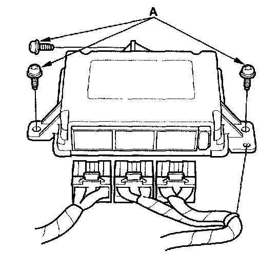7. Disconnect the connectors and remove the Torx bolts (A), then pull out the SRS unit.