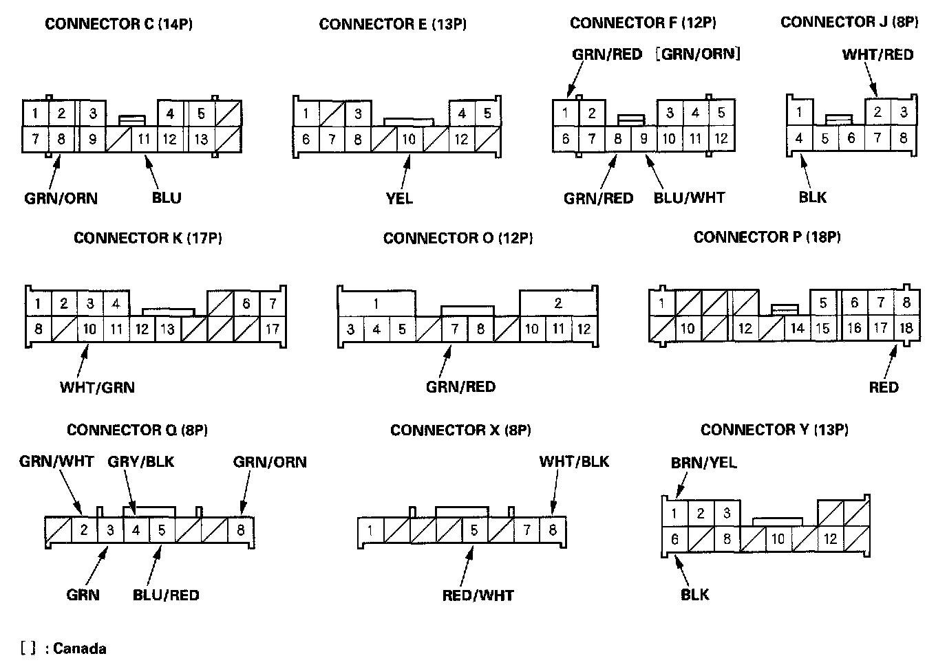 2. Disconnect the under-dash fuse/relay box connectors C, E, F, J, K, O, P, Q, X and Y.