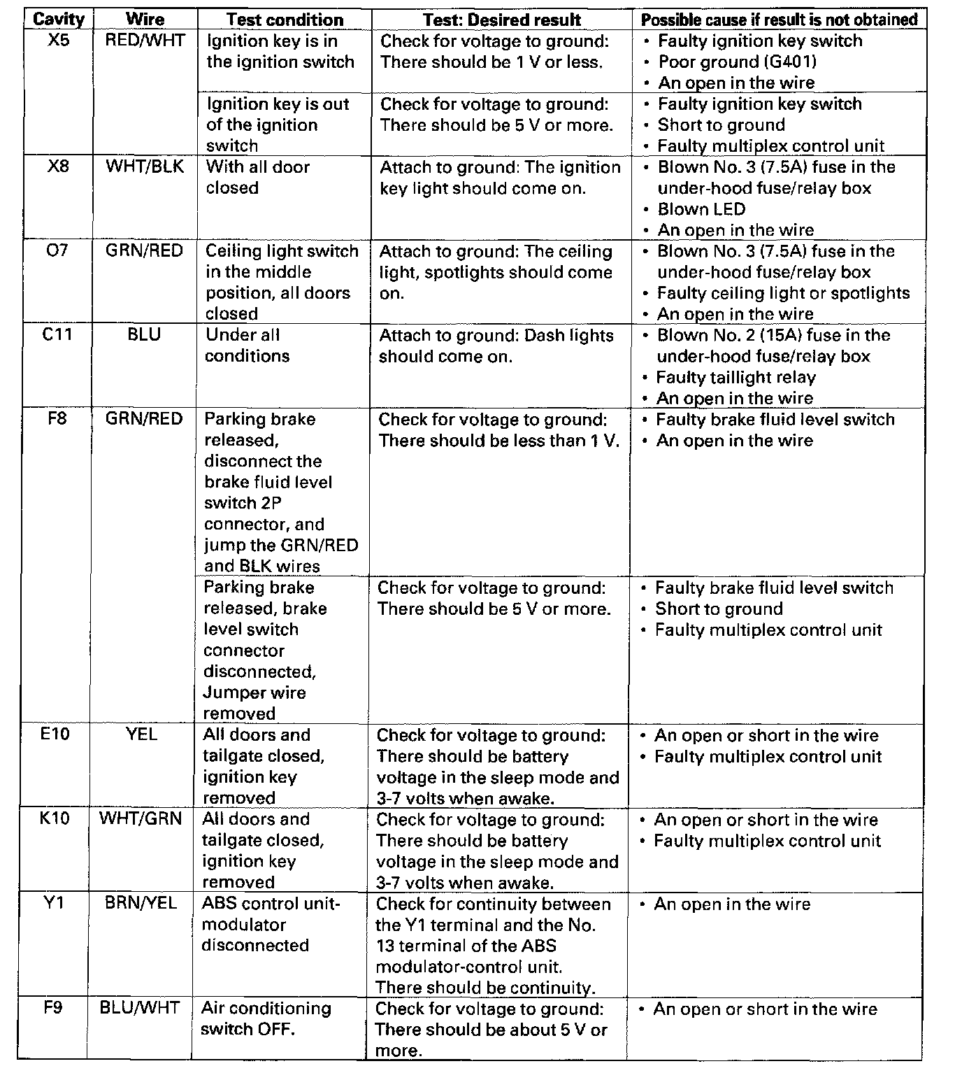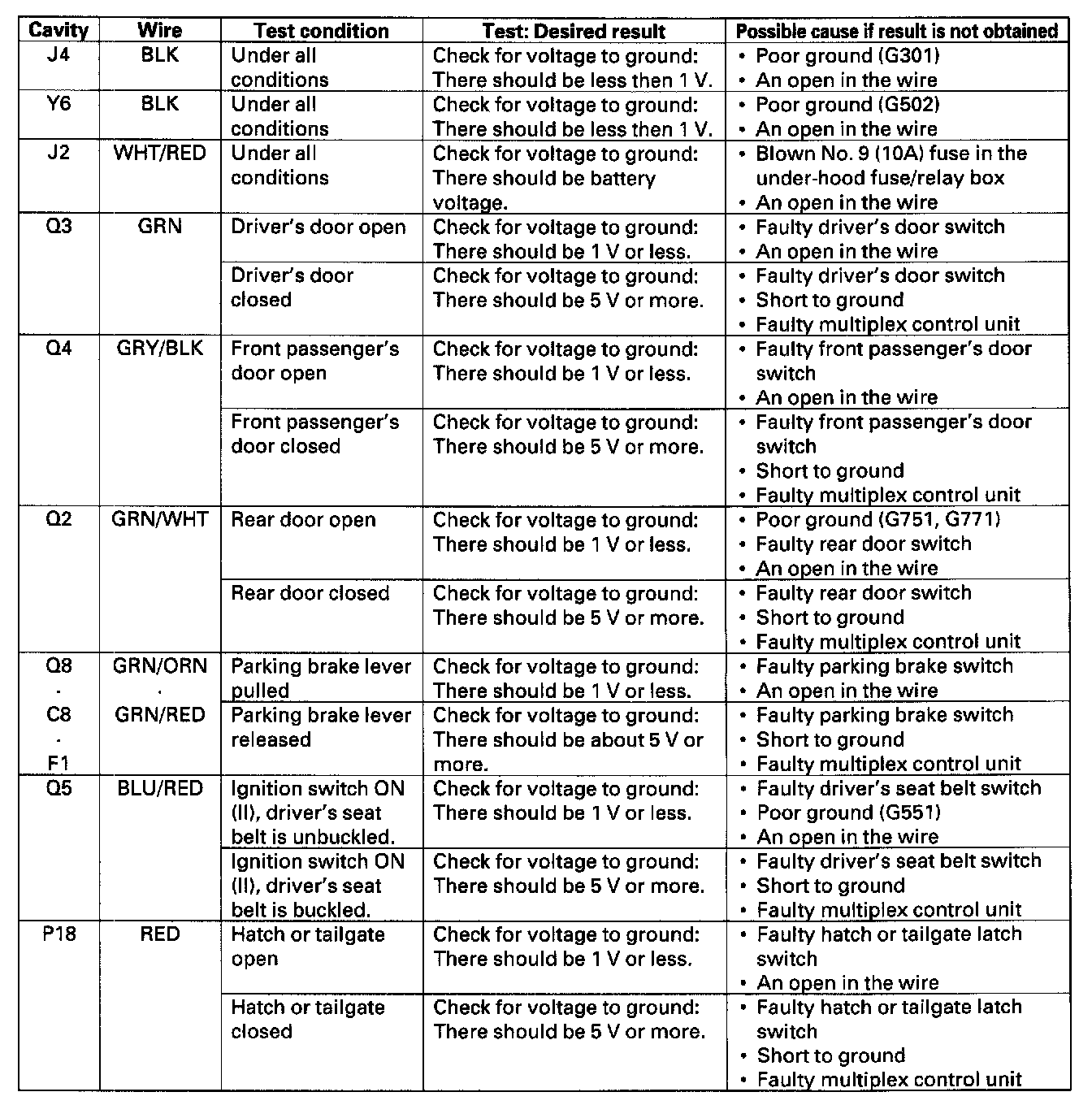NOTE: Before continuing with the multiplex control unit input test, do the multiplex troubleshooting.