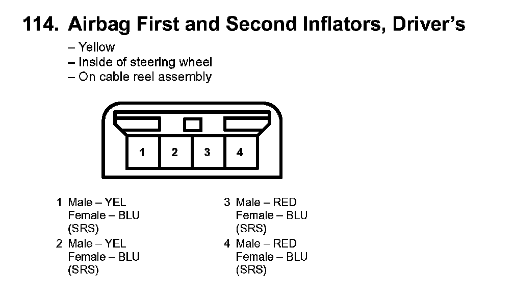 114. Airbag First And Second Inflators, Driver's: