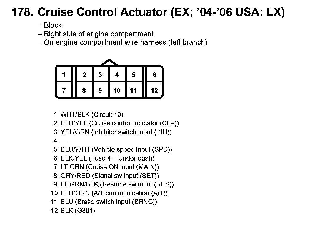 178. Cruise Control Actuator (EX; '04-'06 USA: LX):