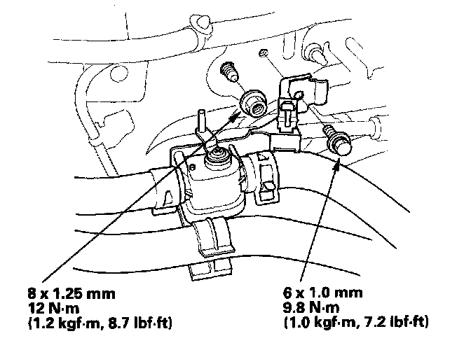 7. Remove the mounting bolt and the heater valve as shown. Remove the mounting nut from the heater unit. Take care not to damage or bend the fuel lines and the brake lines, etc.