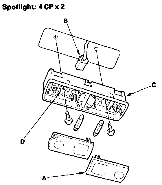 6. If the continuity is not as specified, check the bulb. If the bulb is OK, replace the spotlight assembly.