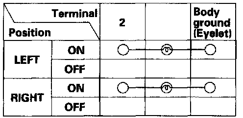 5. Check for continuity between the terminals in each switch position according to the table and the left mounting screw eyelet (D).