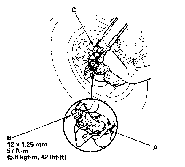 4. Turn the tie-rod arm (c) until the front toe is within specifications.