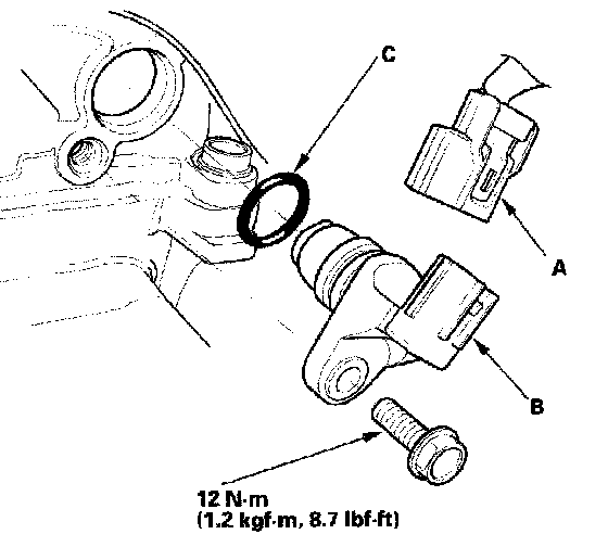 5. Install the sensor in the reverse order of removal with a new O-ring (C).