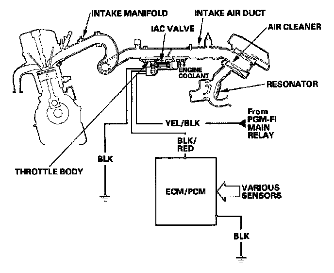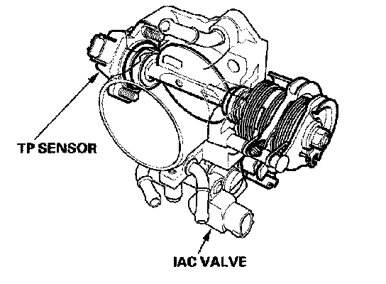 The throttle body is a single-barrel side draft type. The lower portion of the idle air control (IAC) valve is heated by engine coolant from the cylinder head to prevent icing of the throttle plate.