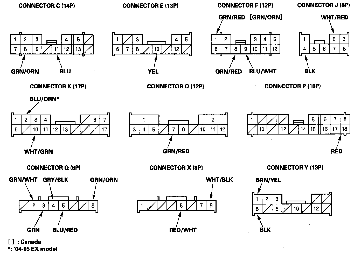 NOTE: All connectors are wire side of female terminals.