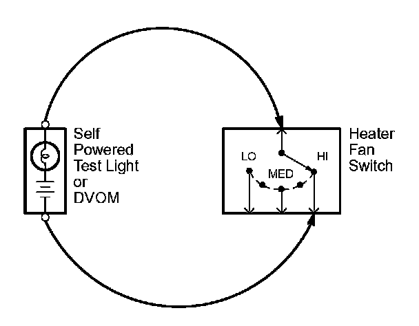 5. If the self-powered test light goes on or the DVOM displays a low reading or no reading (zero), there is a short to ground in the wiring near that point.