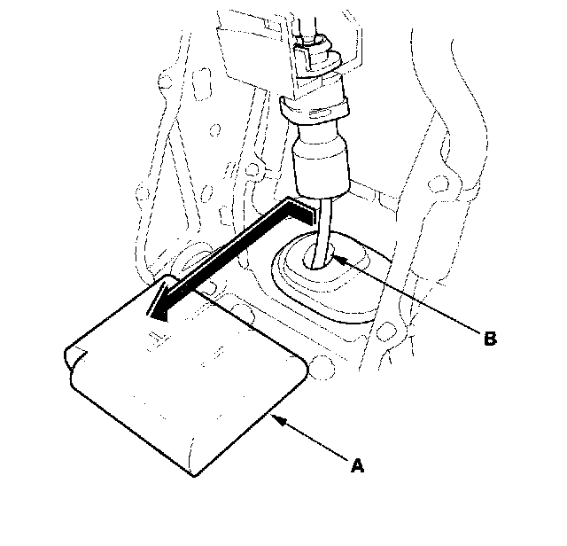 7. Separate the shift cable end (A) from the shift cable end holder (B).