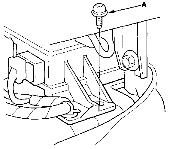 6. Pull down the carpet, then remove the Torx bolt (A) from the SRS unit.