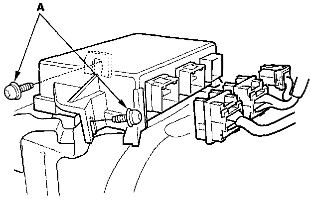 7. Disconnect the connectors and remove the two Torx bolts (A), then pull Out the SRS unit.