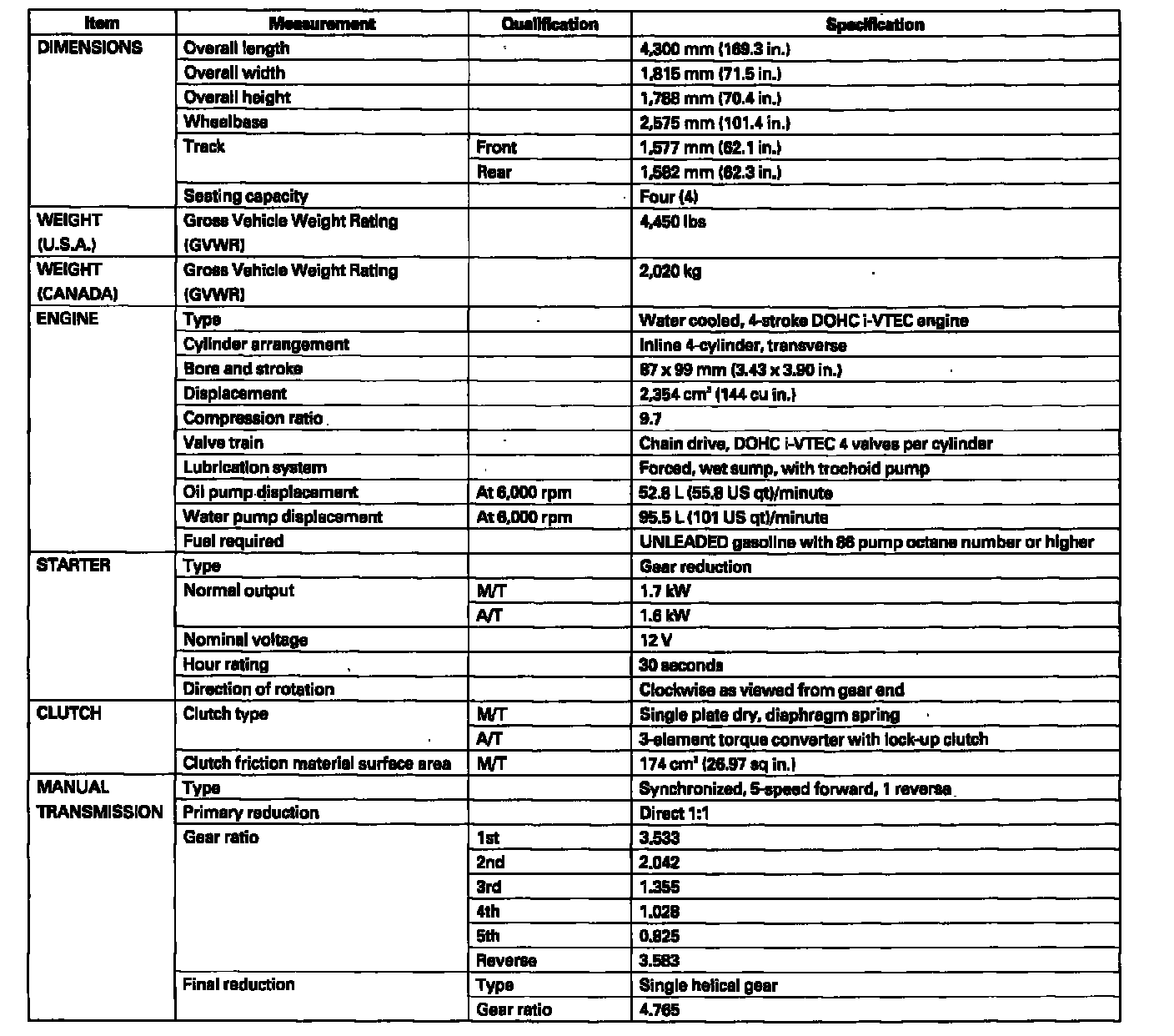 Element 2WD L4-2.4L
