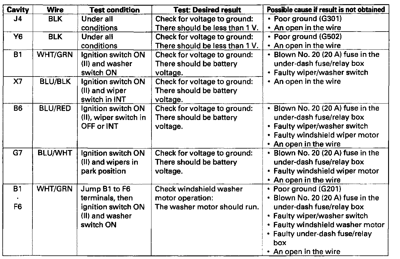 Windshield Washer Control Module: Testing and Inspection