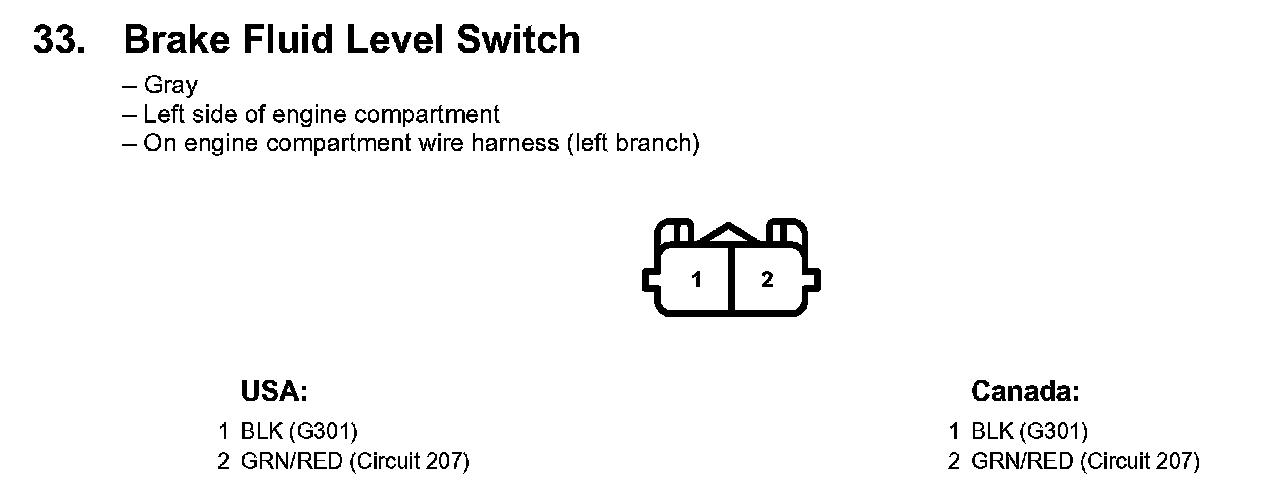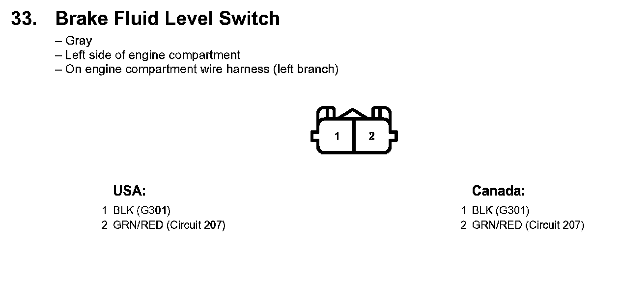 33. Brake Fluid Level Switch: