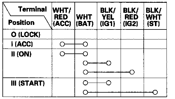 4. If the continuity checks do not agree with the table, replace the steering lock (ignition) switch.