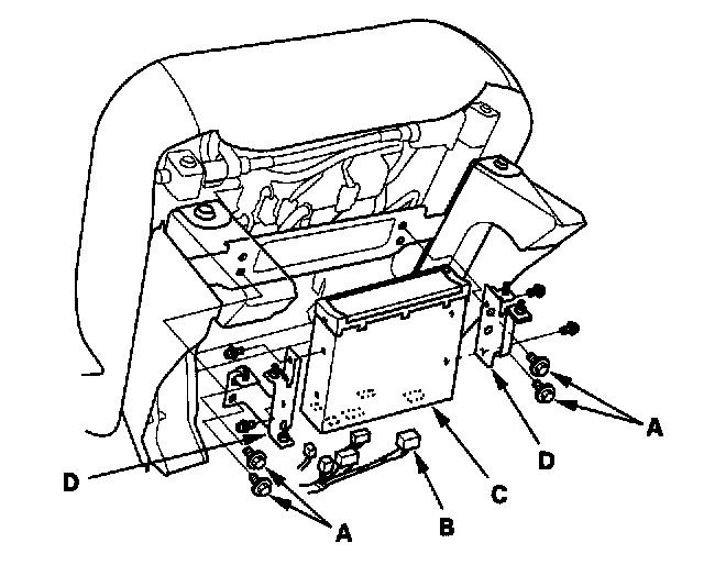 2. Remove the navigation unit (C) with bracket (D) from the driver's seat.